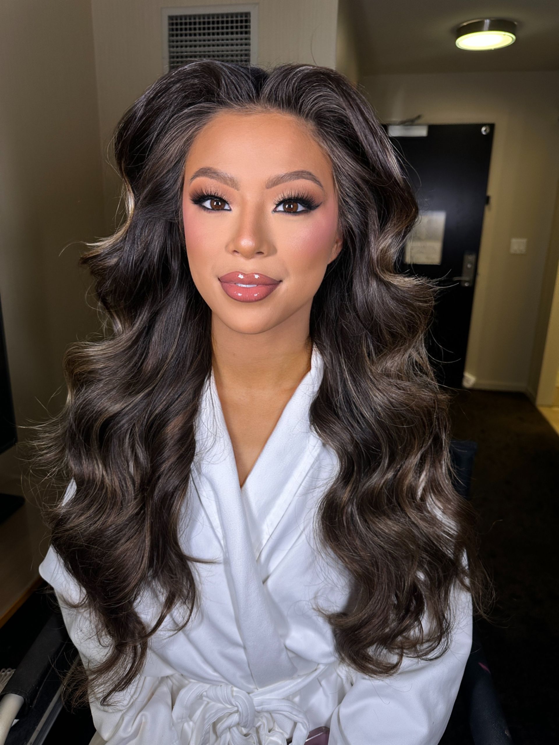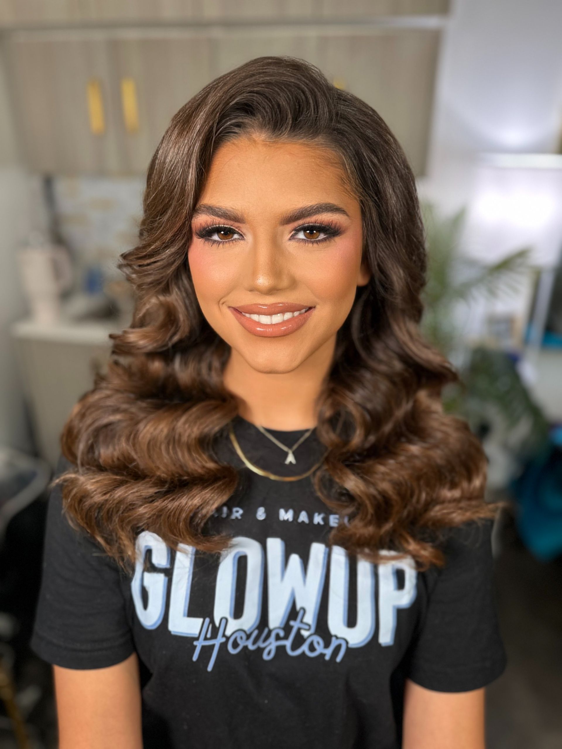 Step onto the stage with confidence and grace with GlowUp Houston’s expert pageant hair and makeup services. With years of experience in pageantry, including work for Miss USA and Miss Teen USA, we know how to craft looks that dazzle the judges